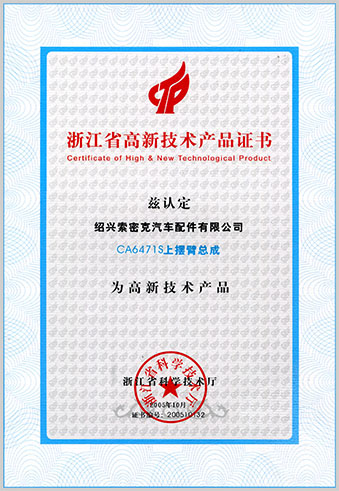 公司已先后通過IATF16949質(zhì)量管理體系認證、ISO/14001環(huán)境管理體系認證和OHSAS18001職業(yè)健康安全管理體系認證。是“國家高新技術(shù)企業(yè)”“行業(yè)龍頭企業(yè)”和“全國百家優(yōu)秀汽車零部件供應(yīng)商”。